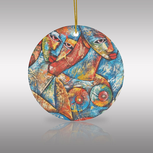 Our Modern Women Cubism Modern Art Ornament is uniquely designed by talented artists and designers to bring you an original ornament to be treasured for years to come! This cubist design highlights two gorgeous women in various colors on a single-sided ceramic disc. Glossy on front and back, it comes with a gold loop for easy hanging.