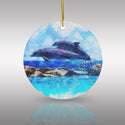 Coastal Dolphins Watercolor Art Ceramic Ornament